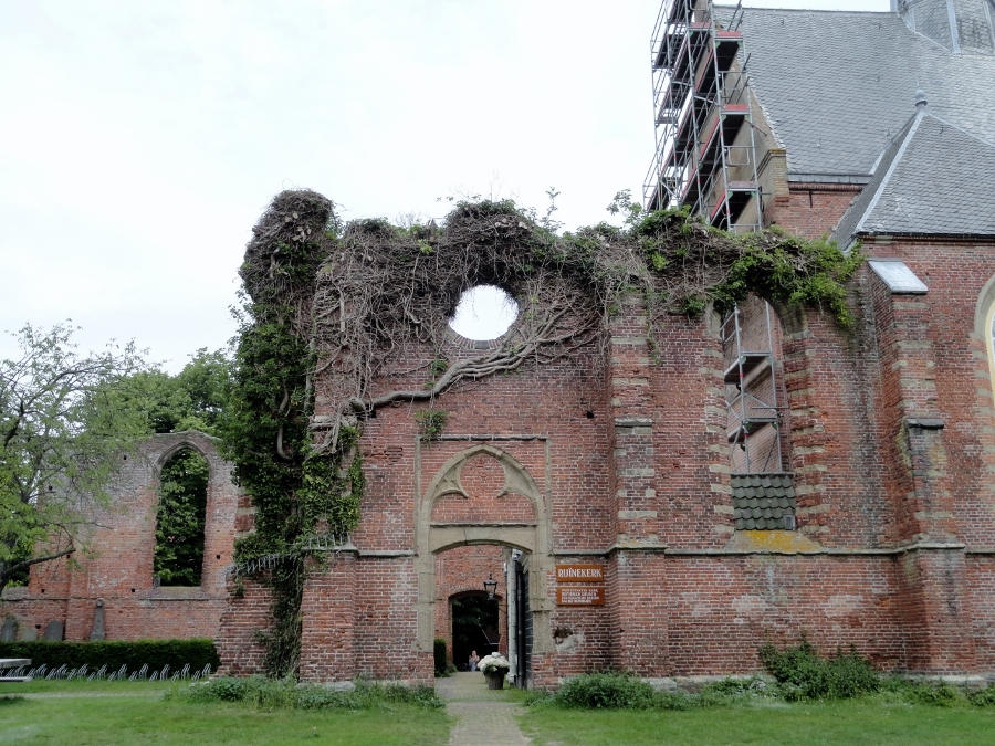 De volgende stad is Bolsward. Ze hebben inderdaad een mooi stadhuis en een paar fraaie kerken. Verder valt het ons hier knap tegen. Op het marktplein drinken we koffie op een terras. Het lijkt even te gaan regenen. We zetten ons tafeltje een stukje naar achteren richting de pui, opdat onze spullen op tafel droog blijven. Het valt gelukkig alles mee met de miezer/regen. Al gauw is het weer droog.