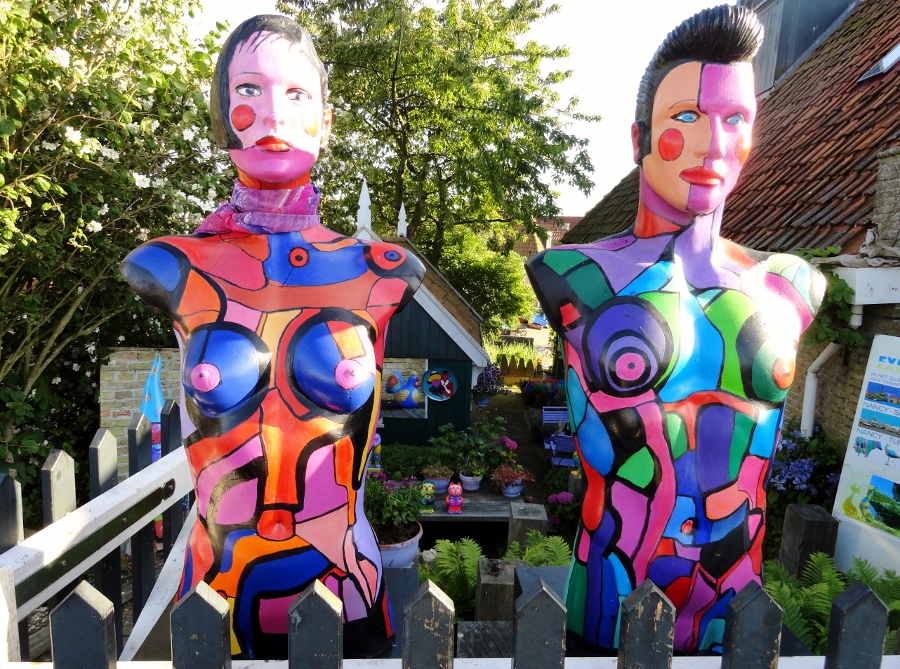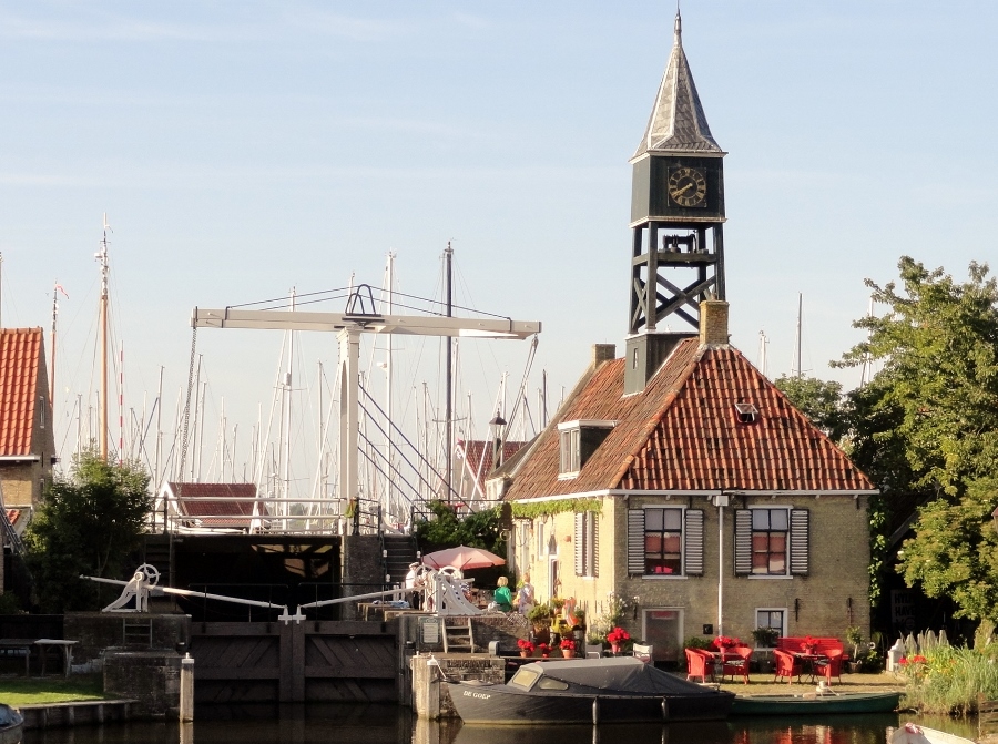 In Stavoren moeten we even kijken naar het kleine beeld van de Vrouwe van Stavoren. Op de sokkel staat het verhaal wat bij deze mevrouw hoort. Hindeloopen is het eindpunt voor vandaag. In de nog niet zo veel jaren gelden gerestaureerde haven liggen heel wat plezierboten. De plaatselijke 50-plussers praten elkaar bij op de leugenbank uit de wind in de zon van het gebouw van de Noord- en Zuid-Hollandse Reddingsmaatschappij.