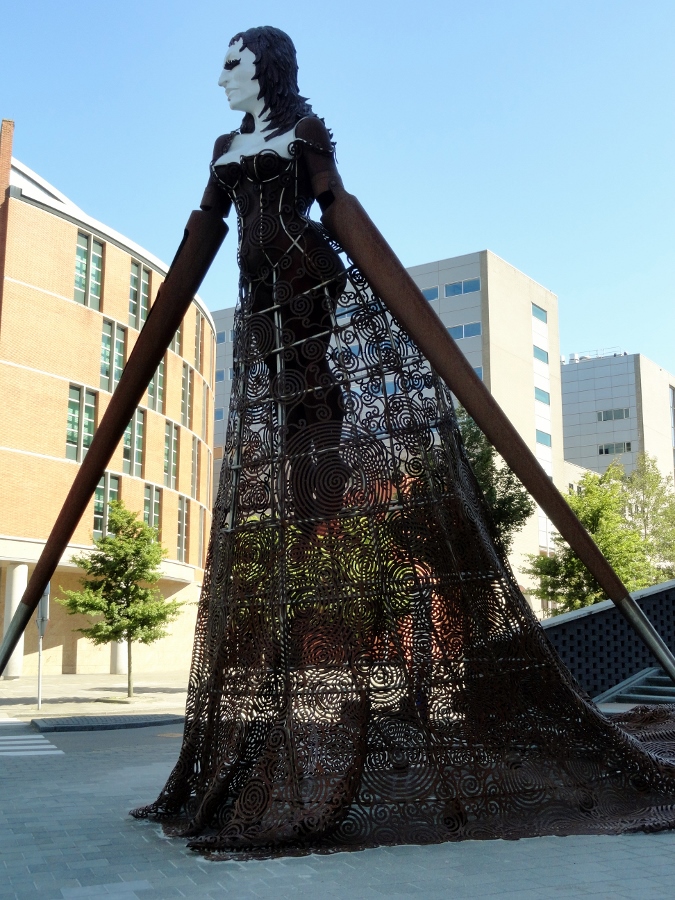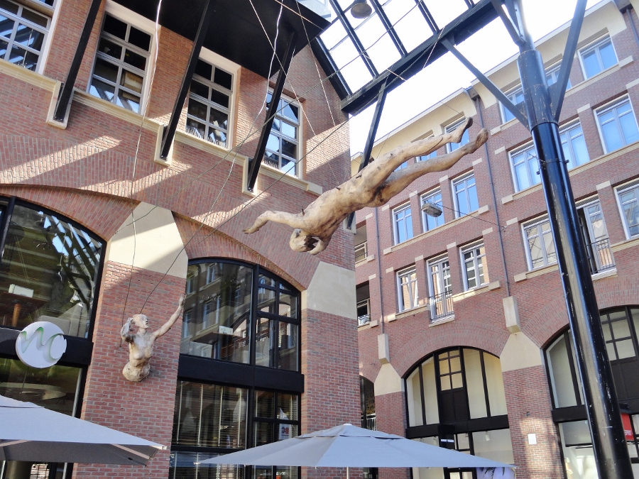 Oudewater, beeldengroep van badende vrouwen. Aalscholvers poepen op de gladde ranke ruggen van de stenen dames