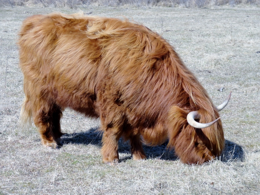 Verderop langs een doorgaande weg staan duurdere flatwoningen met uitzicht op de duinen. Daar waar we via een fietspad de Kennemerduinen in kunnen, gaan we rechtsaf. Grote grazers eten van het winterse grijze gras. Het is nog even wachten op mals groen gras. Er staan vrij veel richtingborden in het duingebied. Wij houden Parnassia aan. Vlak bij het strand aangekomen op het café-restaurant-terras zetten we onze fiets neer en nemen hier een drankje. Het houtwerk wordt opnieuw in de blauwe verf gezet.