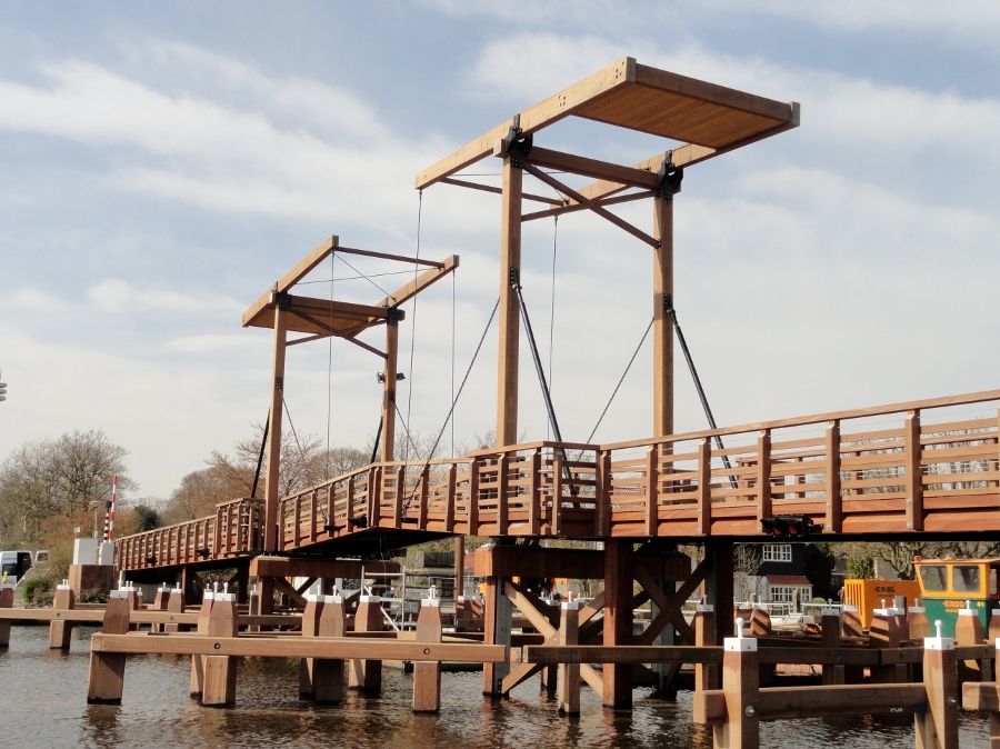 In Warmond nemen we een kijkje bij de, met Europese subsidie aangelegde, nieuwe brug naar het eiland Koudenhoorn. Je kunt er nog niet overheen. Tijdelijk is een geïmproviseerde brug aangelegd om op het eiland te kunnen komen.