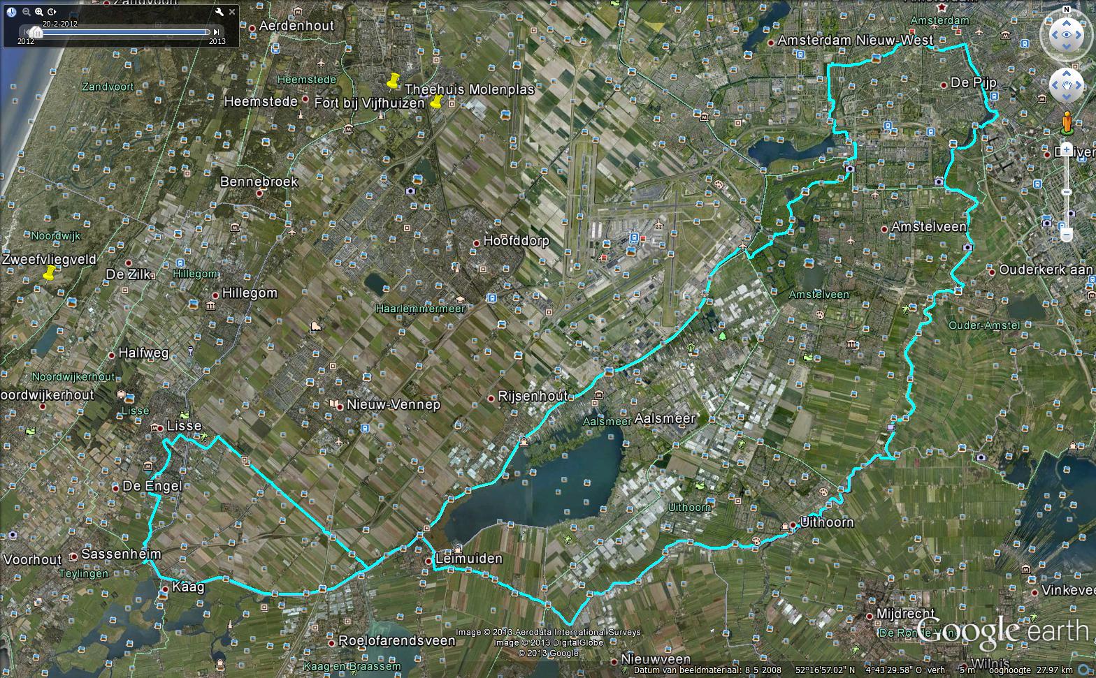 Begin van de zomer gaan Bert en ik fietsen van Praag via Regensburg terug naar Nederland. Er is daarom niets mis mee om regelmatig samen een rondje te fietsen. Vandaag staat Amsterdam op het programma. Heen gaan we over de Ringvaartdijk van de Haarlemmermeer door Buitenkaag, Rijsenhout naar Schiphol-Oost. Daar nemen we een fietsroute door het Amsterdamse Bos. Drie weken geleden maakten we een wandeling en gingen ook door dit in de economische crisis van de jaren 30 van de vorige eeuw aangelegde bos.