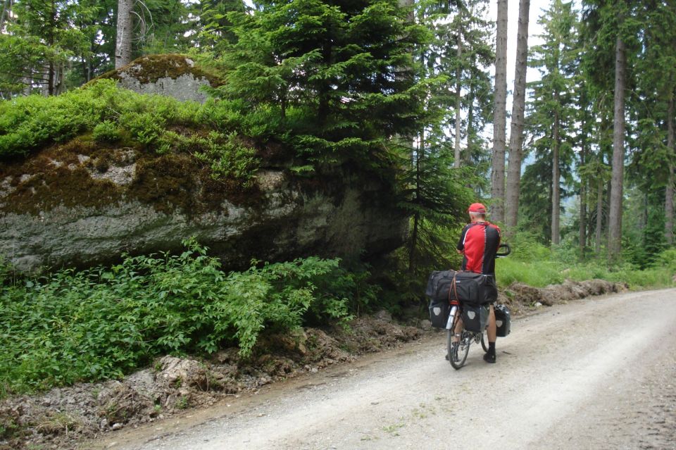 Vanaf Bad Berneck gaan we over een fietspad aangelegd op het traché van een vroegere spoorlijn. Gedurende tien km stijgen we van 400 m naar ruim 800 m hoogte, het hoogste punt van onze rit naar Praag.