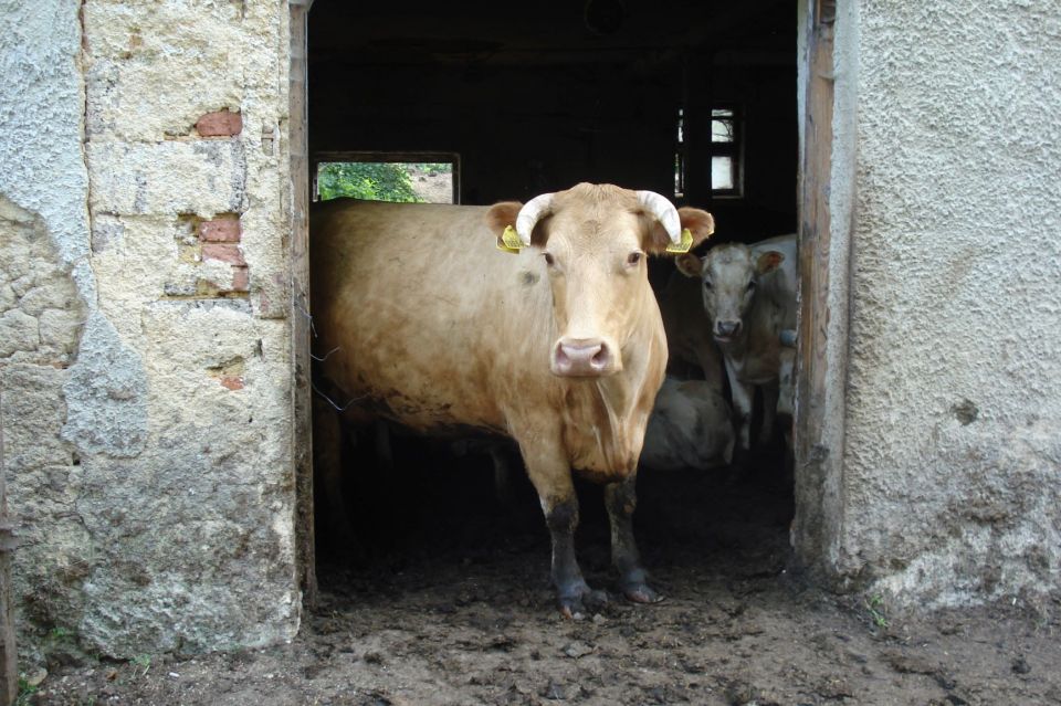 Bij de boerderij vlak bij de molen roep ik “volluk” bij de horrendeur van de bijkeuken. Ik meld aan de boer dat er een koe in de sloot staat, die er zelfstandig niet uit kan komen. Alle koeien zijn daarbij erg onrustig. De boer zegt dat hij weet waarom de koeien onrustig zijn. Hij heeft zojuist een nieuwe koe bij de een groepje koeien op de dijk gezet. “Dan zijn ze altijd onrustig. Waarschijnlijk is een koe door de onrust in de sloot terecht gekomen “. De boer komt naar buiten, zijn knecht heeft een tractor mee en de boerin banden om de koe uit de sloot te trekken.