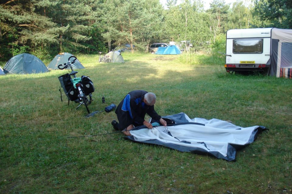 Op een camping twee km vóór Klãšter Teplá (Klooster Teplá) zetten we de tenten neer. Als we bijna klaar zijn met opzetten begint het te onweren en komt er een flinke bui uit de hemel. Gauw duwen we alle tassen in onze tenten.