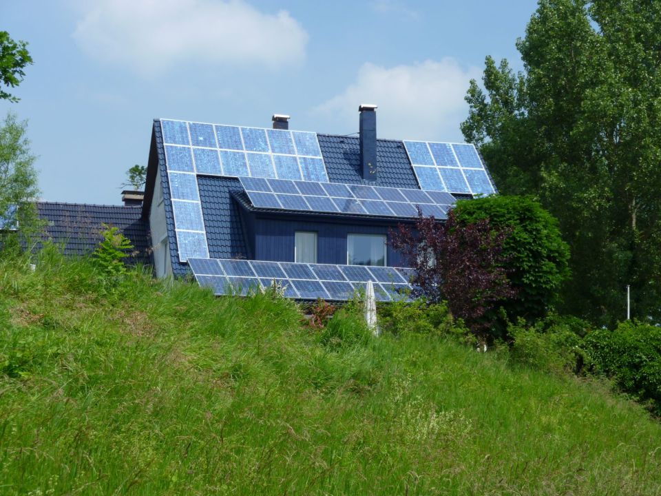 Hier en daar zie je vrijstaande huizen of boerderijen waarvan de daken vol zitten met zonnecollectoren, een aardige bijverdienste. In Duitsland krijgen of kregen de burgers ruime subsidies voor het opwekken van zonne-energie, die ze deels doorleveren aan het energiebedrijf.