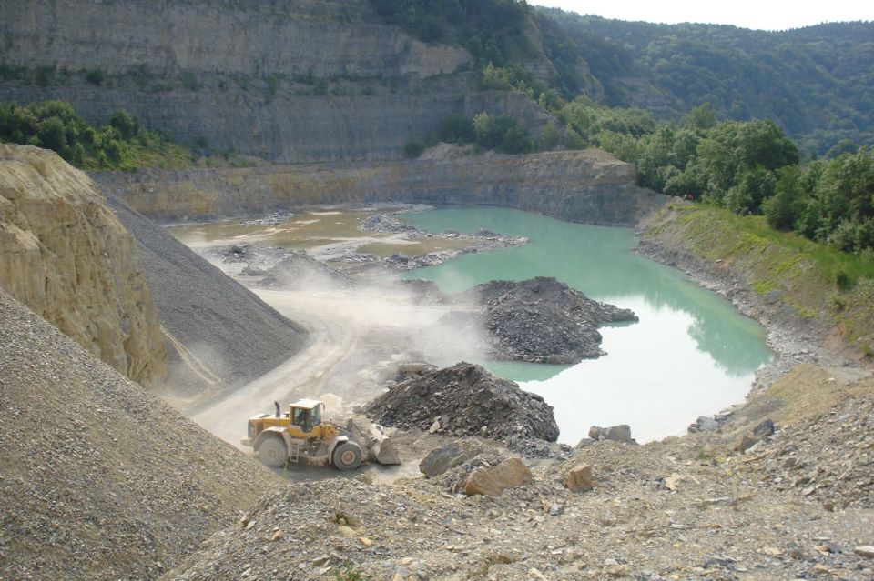 Als we per abuis een verkeerde weg nemen, komen we bij een steengroeve. Als we terugfietsen zien we dat het verboden was om die weg in te rijden (“auf eigener Gefahr”).