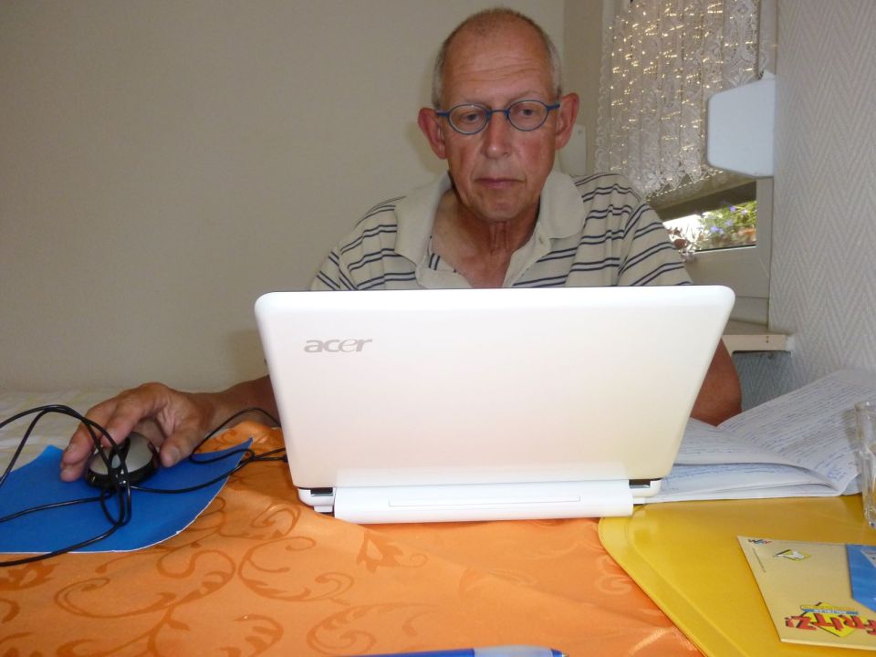 Onze gastheer en gastvrouw van Vrienden van de fiets in Velp trakteren ons op een koel biertje voor ze ons de kamer laat zien.