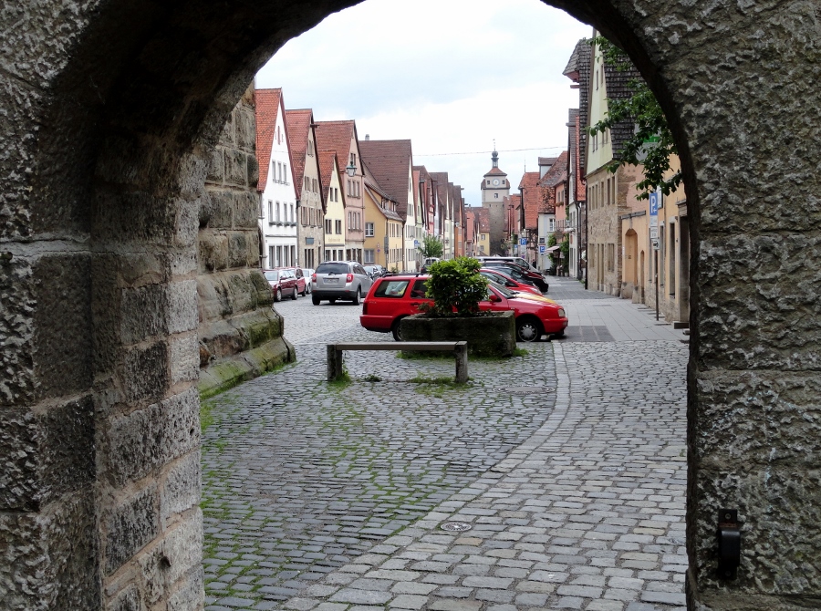 In Lautershausen regent het nog steeds. Dat geldt ook voor de hoog gelegen Frankische vrijstad, Rothenburg ob der Tauber. We stoppen er voor vandaag mee. Wij melden ons bij een hotel en trekken droge kleren aan. De natte spullen trekken we zoveel mogelijk uit en kleden ons met droog goed.