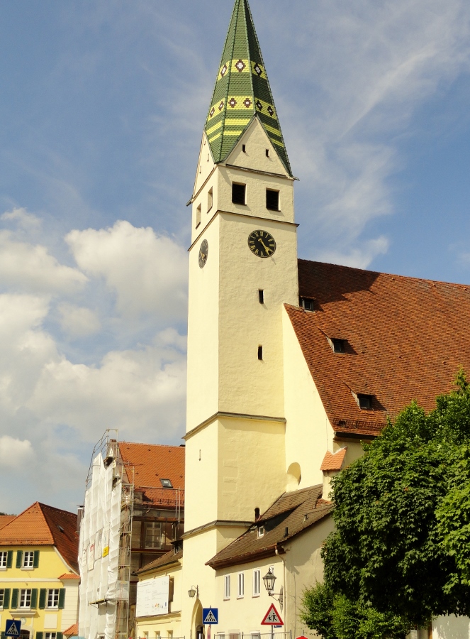 Gisteren en eergisteren kronkelde het fietspad, respectievelijk de boerenweg, samenop met het dal waarin het riviertje de Altmühl loopt. Vandaag zijn er min of meer rechte stukken weg door landbouwgebieden. Herrieden heeft een mooie stenen brug met bogen. Nadat we bij de VVV door een poortje rijden kunnen we een mooie foto maken van deze brug. Ik doe het niet. Het fototoestel laat ik in zijn tasje in de beschermende plastic zak. Het regent al de hele morgen.