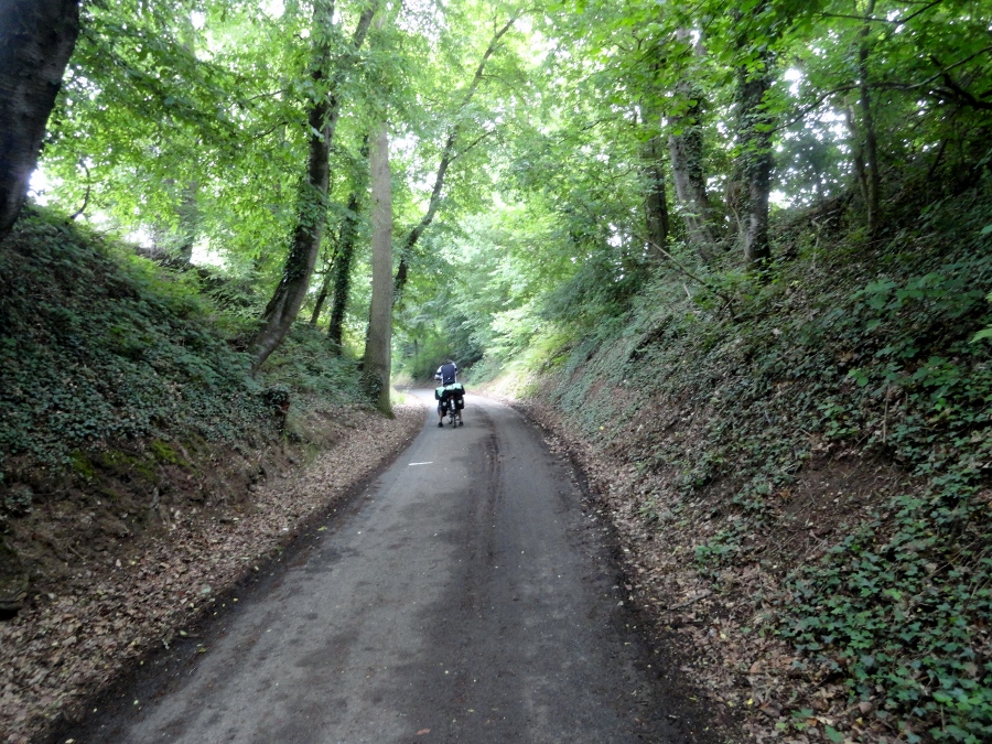 Als we net van de camping zijn afgereden worden we gepasseerd doo onze Vlaamse vrienden van gisterenavond. Zij zwaaien vanuit de auto en wij vanaf de fiets. Het is nog aardig fris vanmorgen.