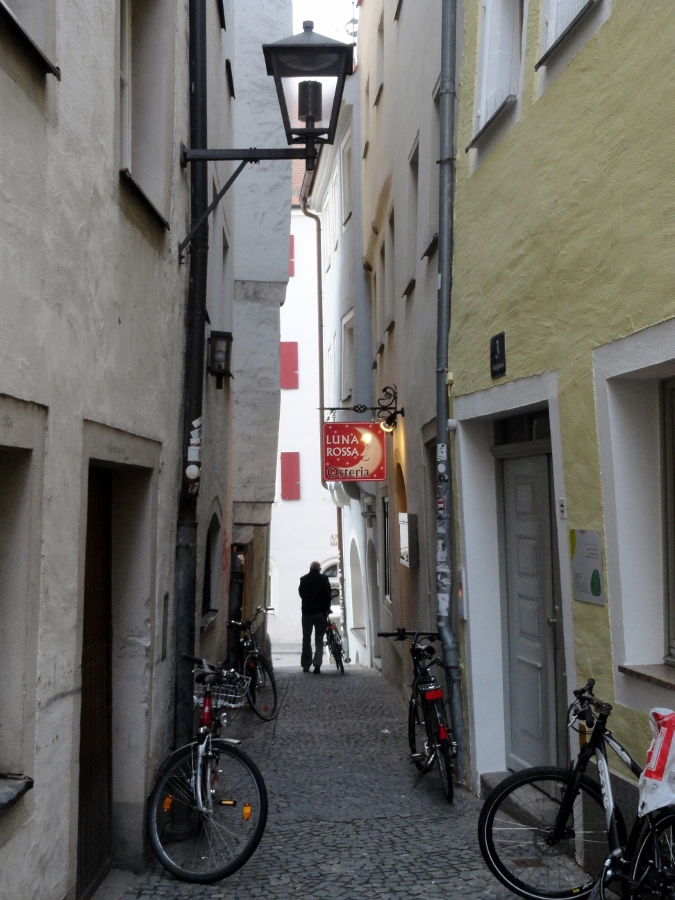 In Regensburg stroomt de Regen in de Donau. Het stadswapen van deze stad bestaat even als het stadswapen van Leiden uit twee sleutels. Bert vertelt mij dat dit iets te maken heeft met Petrus. In Leiden is er de St. Pieterskerk een hier de Sankt Peterkirche.