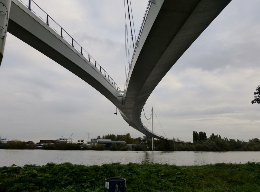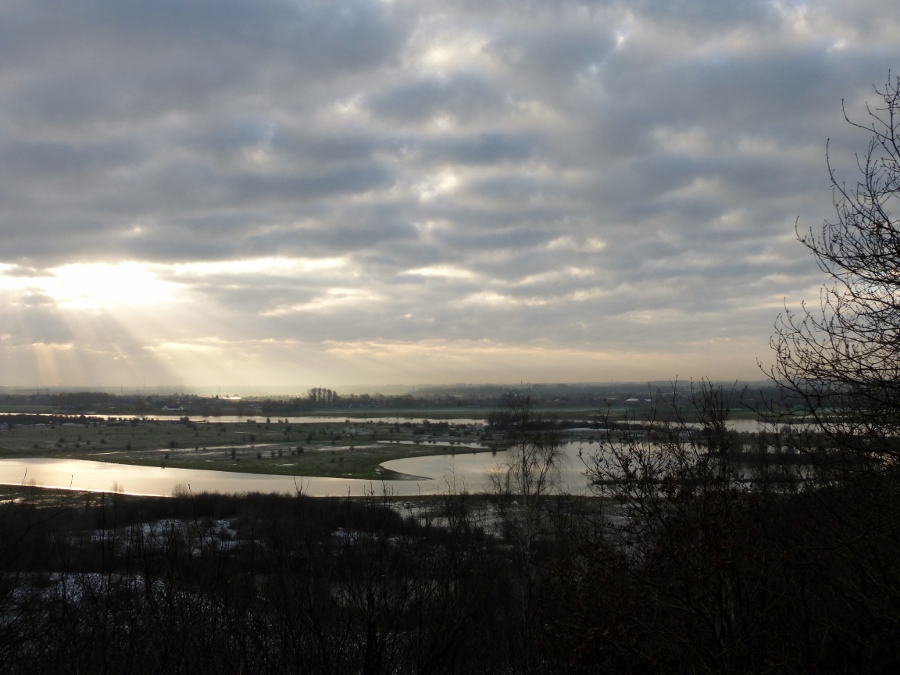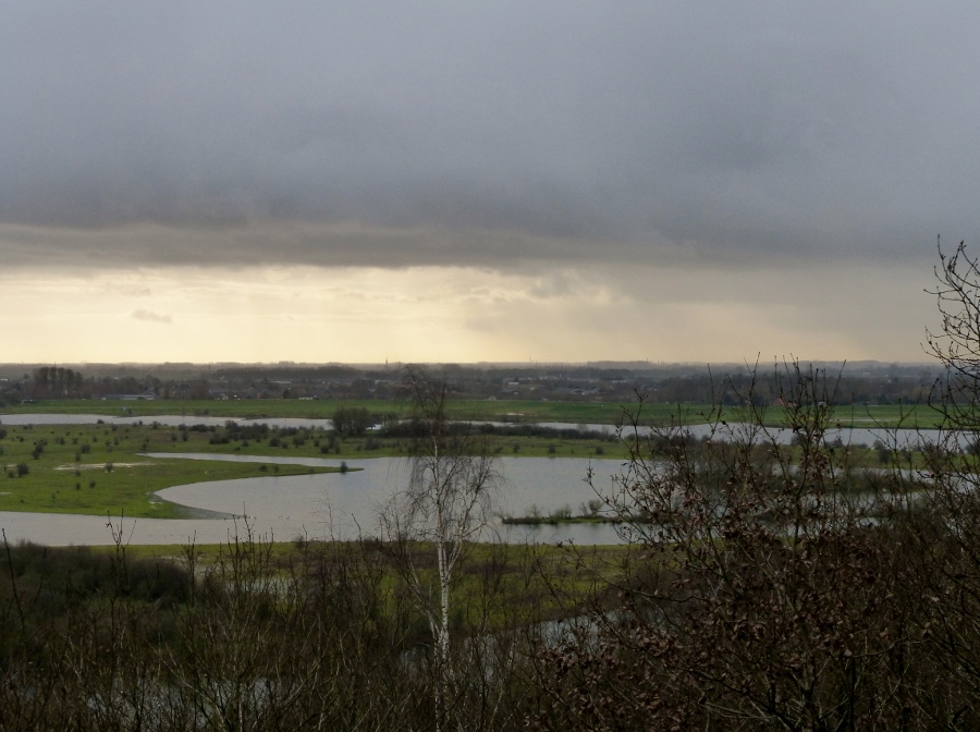 Rond elf uur ben ik in Rhenen. Het is nog rustig in de winkelstraat van deze stad aan de Nederrijn. Via een nogal steile trap gemaakt van houten bielzen kom ik op de Grebbeberg. Hier volg ik een pad op de rand van de berg met uitzicht op de rivier. Als ik ter hoogte van Natuurreservaat De Blauwe Kamer ben, vormen zich donkere wolken en krijg ik te maken met een regenbuitje.