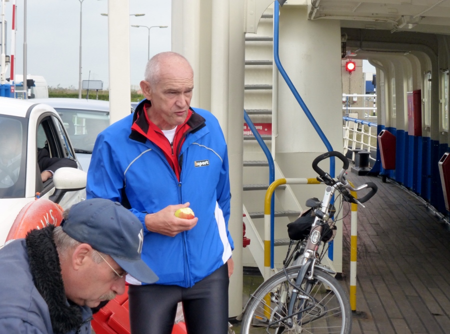 Na het station van Beverwijk en de Meubelboulevard houden we de bordjes Zaanstad-Zuid aan. We fietsen nu op een rijwielpad evenwijdig aan de kaarsrechte weg langs het Noordzeekanaal. Bij Buitenhuizen staat het pont voor ons klaar. We hoeven niet te wachten.