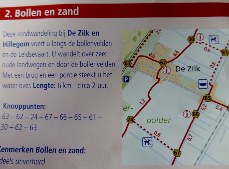 Aan de overkant gaan we langs Spaarndam en het recreatiegebied Spaarnwoude. Bij het treinstation ter hoogte van IKEA Haarlem gaan we door Parkwijk en de Amsterdamse buurt, waar we de bordjes van een LF volgen tot aan Overveen. Vanaf hier gaan we door Aerdenhout en Vogelenzang terug naar de Bollenstreek.