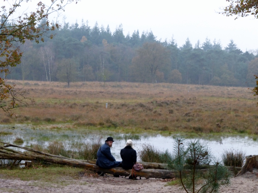 Echt zonnig is het nog niet, maar de mist is grotendeels weggetrokken als we langs de vijvers van Kasteel Groeneveld komen. We passeren Station Baarn, waar een Koninklijke Wachtkamer is. Er is weinig aan te zien. Een hermetisch afgesloten deur en een wapen met twee leeuwen erboven. In Café-Restaurant De Generaal nemen we onze middagbreak.