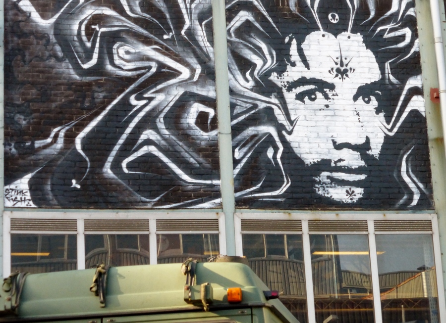 Voordat we bij de tramhalte bij de Piet Heintunnel kunnen komen, gaan we door een rafelrand van de stad met allerlei min of meer rommelige woonvormen, zoals woonwagens en oude bussen, afgewisseld met kleinschalige bedrijfspanden.