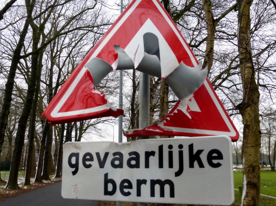 Op de grens van twee provincies volgen we het Valleikanaal. Hier en daar zit of staat iemand te vissen, meest met meer dan één hengel. Twee hobbyvissers met een herdershond hebben een tray eieren mee en maakten een gebakken ei voor de lunch. Zo nu en dan horen we in de verte individuele knallen van vuurwerk of carbid. Een verkeersbord heeft de jaarwisseling 2014-2015 nu al niet overleefd.