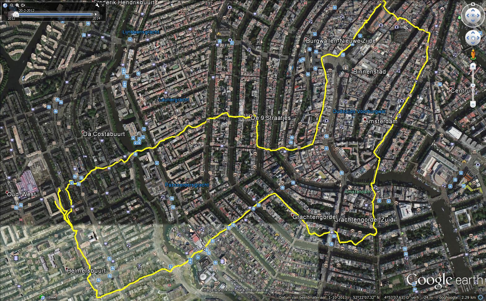 Van hier uit wandel ik aan de hand van mijn Garmin min of meer evenwijdig aan de op de heenweg gevolgde route. Ik laat me verrassen. In sommige straten of langs sommige grachten kwam ik eerder, maar dikwijls zijn het voor mij nieuwe ervaringen.