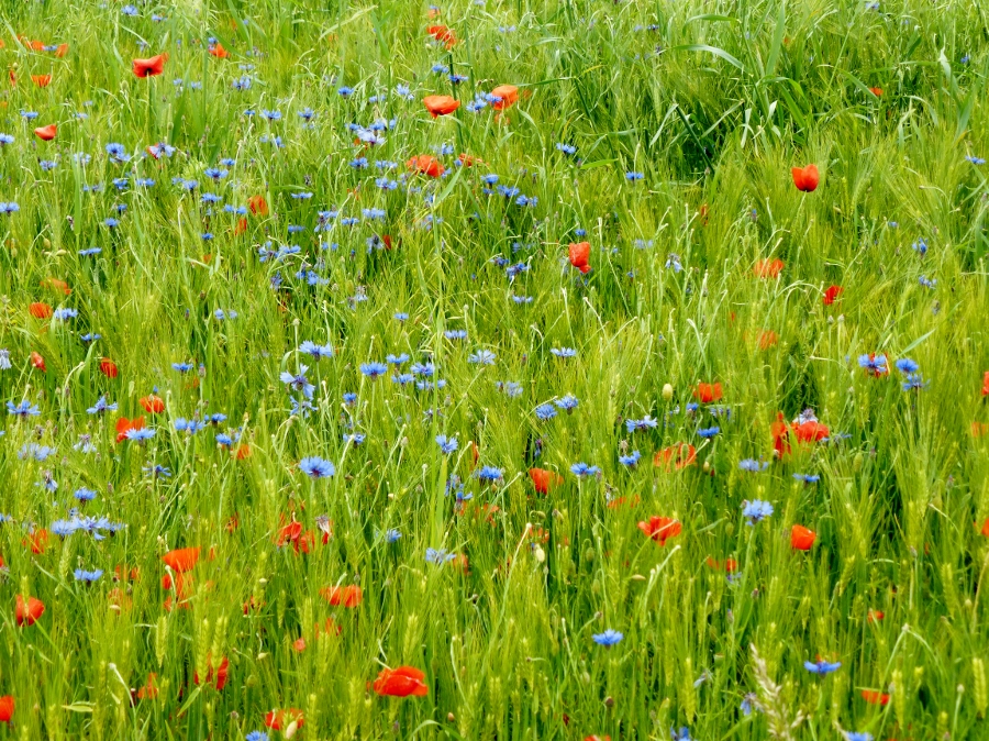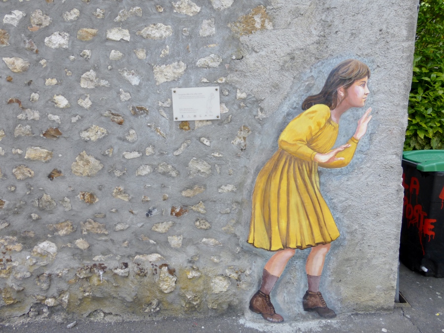 Op de bushalte waar we later schuilen voor een bui staat ‘Château de Chevenelles’. We kijken rond een zien geen kasteel. In het boekje van Clemens Sweerman staat: ‘Het Château de Chevenelles ligt onzichtbaar in de bossen en is niet toegankelijk’. In het volgende dorp, Fougéres-sur-Biéve, lijkt het wel zomer. De zon schijnt hier overdadig.