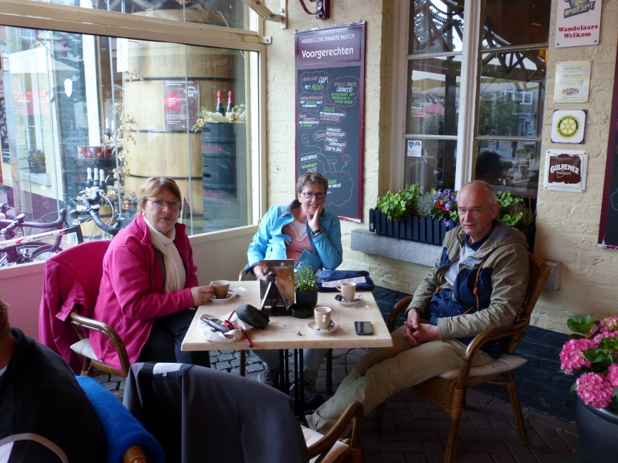 Verder in oostelijk Zuid-Limburg is het aardig heuvelachtig. We komen door Vijlen en Mechelen. Bij de Zwarte Ruiter in Gulpengaan we aan de koffie. Wij zijn de enigen niet. Diverse groepen oudere mannen op racefietsen gaan hier voor een bakkie en een plas. Via dorpjes met namen als IJzeren en Bemelen, komen we uit bij Station Maastricht. Het Vrijthof en het Onze Lieve Vrouwenplein laten we voor wat ze zijn. We nemen de trein.