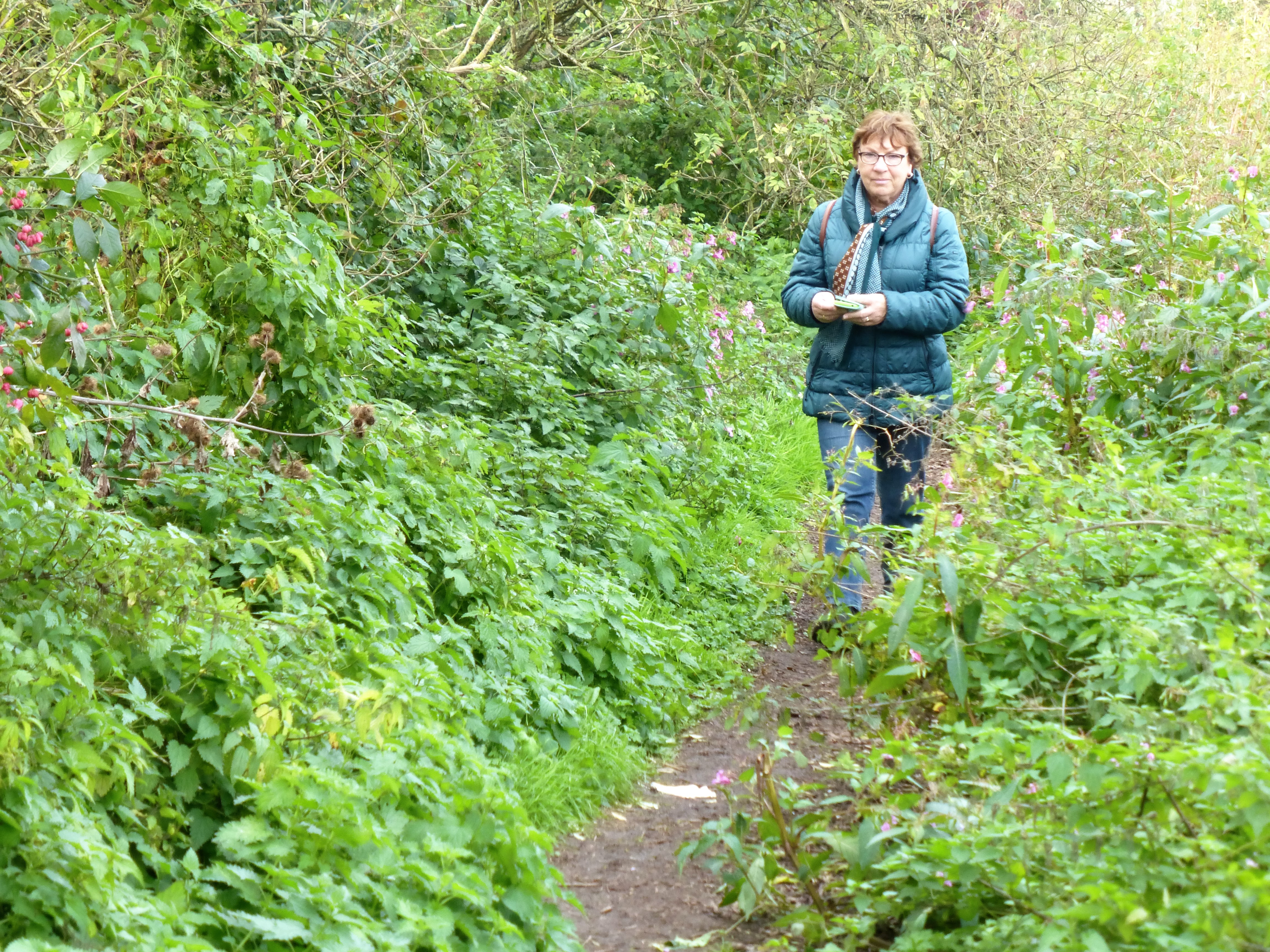 Vandaag is het niet het meest ideale weer voor een rondje Naardermeer. De grond is op sommige plaatsen drassig en het gras is overal drijfnat. Onze dichte hoge wandelschoenen komen van pas. Het is daarom niet druk met wandelaars, maar toch komen we twee dames tegen die een deel van het Westerborkpad wandelen. Ze begonnen in Amsterdam en wandelen een dag of vijf achterelkaar en overnachten bij Vrienden-op-de-fietsadressen. We kunnen ze niet overhalen om ook bij mevrouw Mostert koffie te gaan drinken.