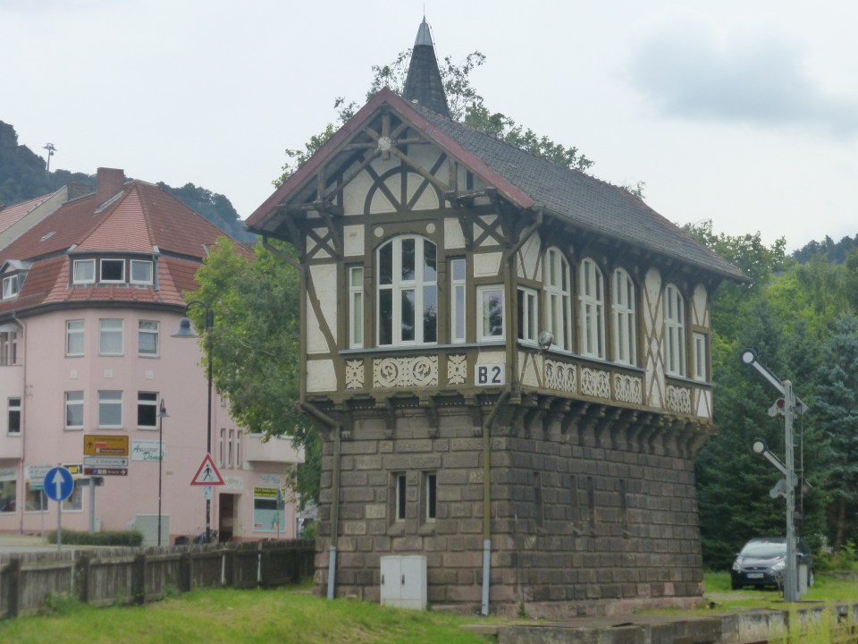 Bij Meisdorf ben ik inmiddels bij de rand van het Harzgebergte aangekomen. Het landschap ziet er daarom heel anders uit dan op eerdere dagen. In Thale stroomt het riviertje de Bode. De jeugdherberg ligt aan het eind van een doodlopende weg langs de Bode. Aan de achterkant van het gebouw en aan de overkant van het water steken rotsen omhoog.