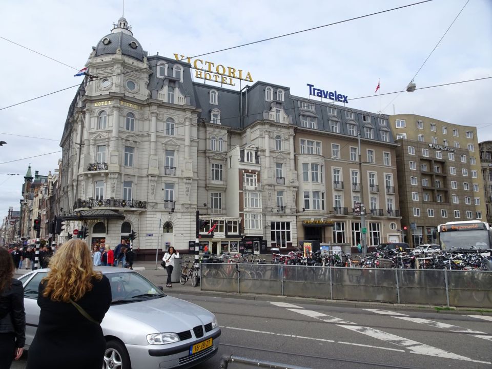 Het Damrak is de laatste jaren opgeknapt. Aan deze entree van de binnenstad is opnieuw bestraat. Allerlei uitbouwsels en vlaggen zijn weggehaald. We steken de Dam over.