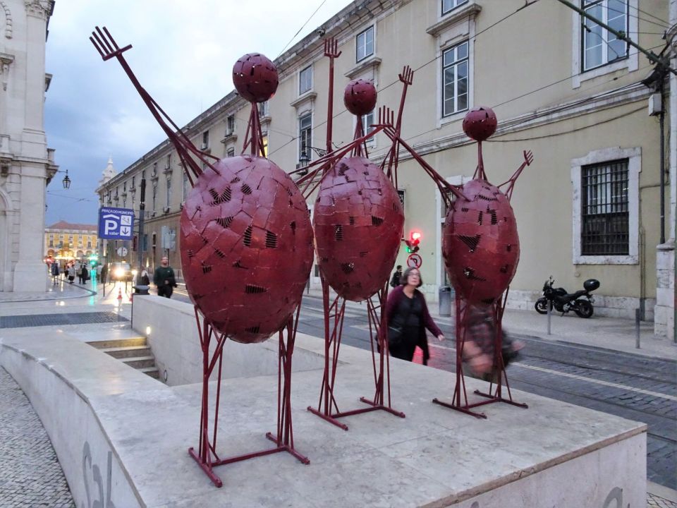 We nemen de metro om vanaf het vliegveld bij ons hotel te komen. Dit hotel heet Residencial Florescente en ligt hartje centrum van de stad. De kamers zijn nog niet klaar, maar onze koffers kunnen we bij het hotel al afgeven. Tegenover Florescente is een theater. Het is gezellig druk in de Rua Portas de Santo Antӑo en in de andere straten van de wijk Baixa. Er zijn hier veel winkels, restaurants, hotels en hostels. Tafeltjes en stoelen staan aan weerskanten van de straten. Personeel van de diverse lokaliteiten nodigen voorbijgangers uit juist bij hun restaurant plaats te nemen voor een drankje of een maaltijd. Er zijn hier ook verschillende pleinen met stambeelden, fonteinen, e.d. De twee grootste zijn Rossio en Plaçde Commércio.