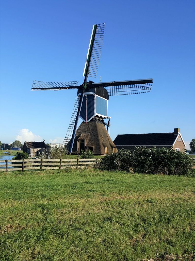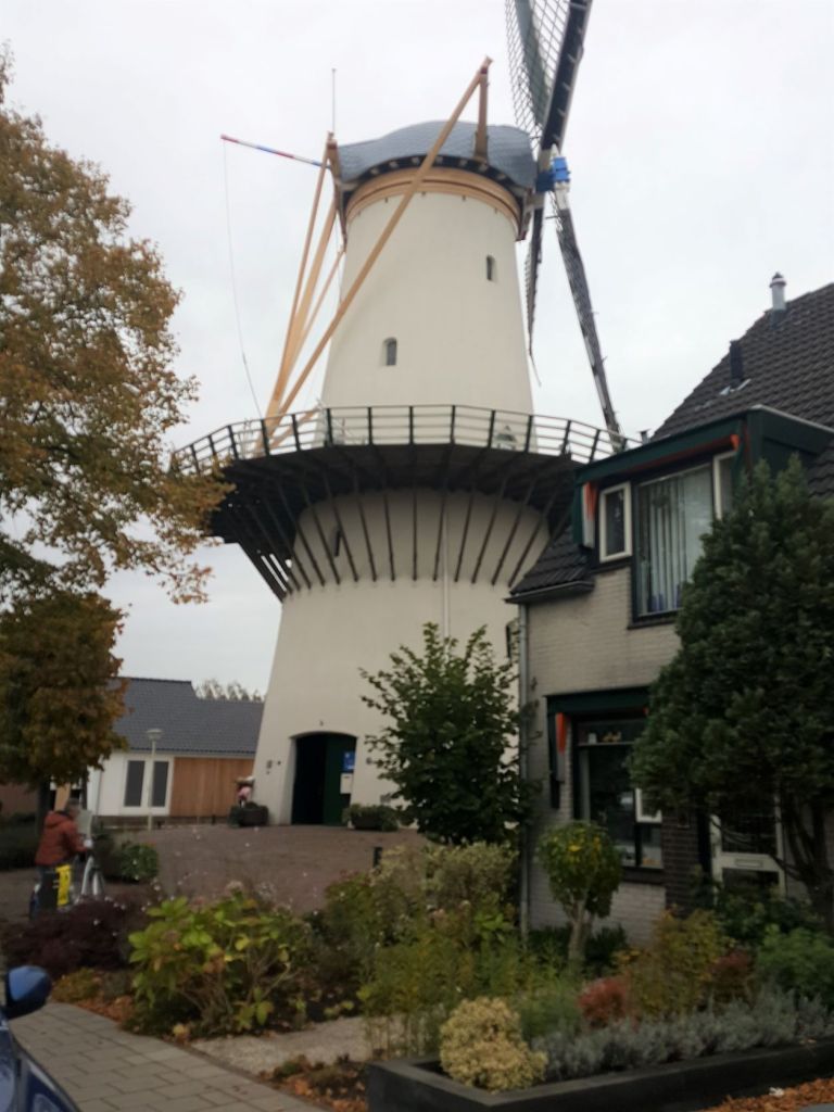 De stad Zoetermeer heeft een gezellig oud centrum rond de Dorpsstraat. Daar is een leuk koffiezaakje. Paraat om onze QR-code te laten zien stappen we naar binnen. Ondanks dat het niet echt druk is heeft het personeel geen zin om naar onze telefoons te kijken. We komen langs de fraaie molen De Hoop. Het is een korenmolen uit 1897.