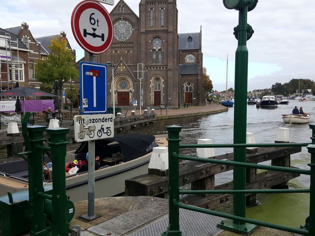 In Oegstgeest moeten we weer anders rijden in verband met de brug bij Warmond. Het staat voor fietsers niet overal goed aangegeven, maar we weten min of meer wel de weg.