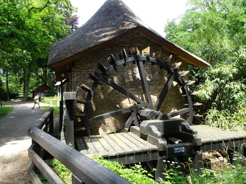 Vandaag staan er weer veel bospaden op het programma. Midden in een bos staat een watermolen. Het rad is vastgezet, terwijl het water van het beekje goed stroomt. Twee keer gaan we vandaag met een pont over de Maas.