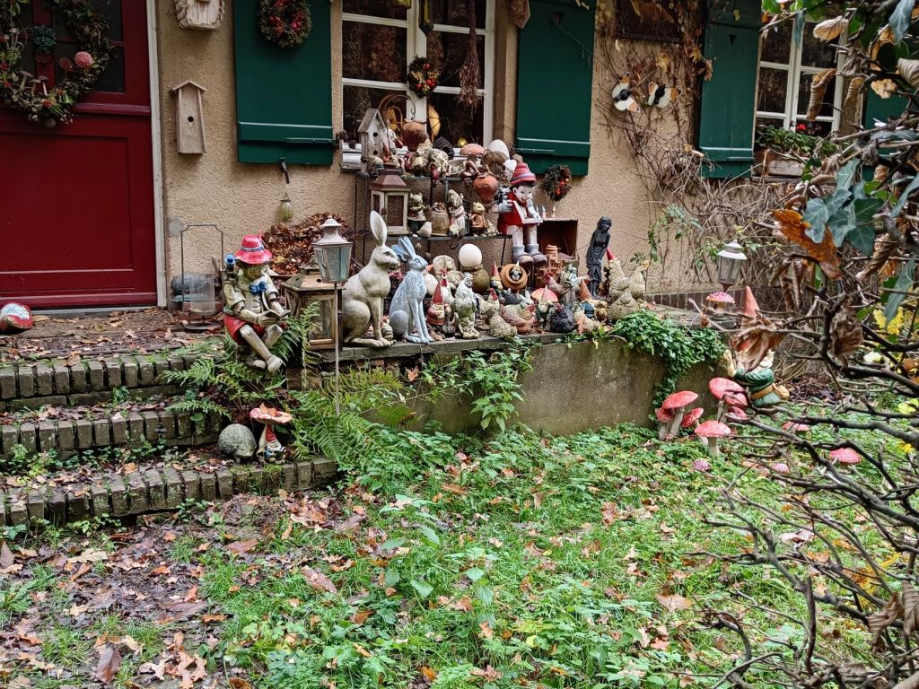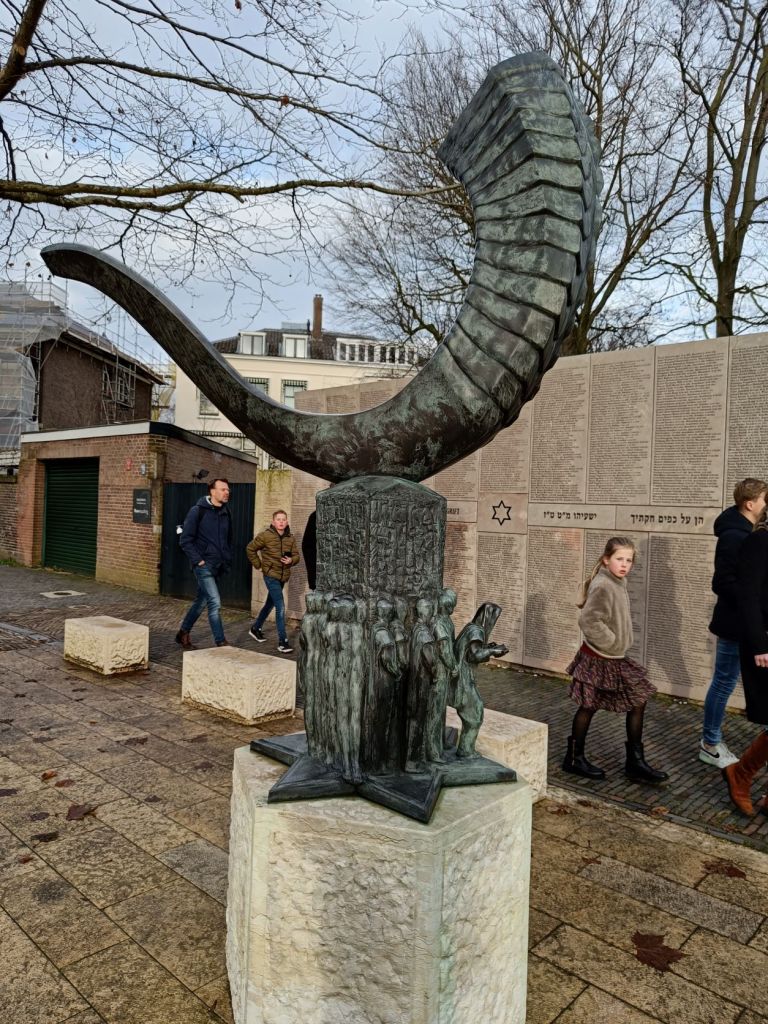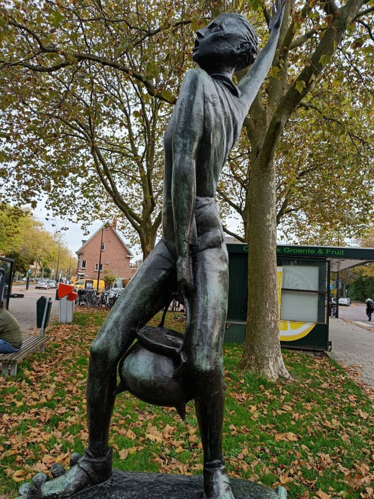 We gaan de Leidse Hout in, een stadspark aangelegd in het kader van de werkverschaffing voor de tweede wereldoorlog. In 1931 werd het park officieel geopend. De paden zijn bedekt met herfstbladeren. We lopen naar kasteel Oud Poelgeest. Hier drinken we een kop koffie op het terras. In de slotgracht/ de vijver staat een beeld ‘De Reiger’. Het stelt een mens voor met een kop van een reiger. Leotine Sies is de maakster van het beeld uit 1998. In Lisse staat overigens ook een beeld van de Amersfoortse kunstenares.