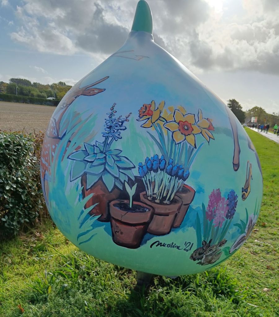 Jeu de Boer, een boerderij waar je onder andere boerengolf kan spelen, is niet ver meer. Tot 1 april 2023 duurt het winterseizoen hier. Ze zijn gesloten. We lopen het erf over en klimmen over twee hekken vlak achter elkaar. Omdat het de afgelopen dagen veel heeft geregend is het best drassig. Gelukkig wordt het later minder. We hadden beter om kunnen lopen via andere knooppunten.