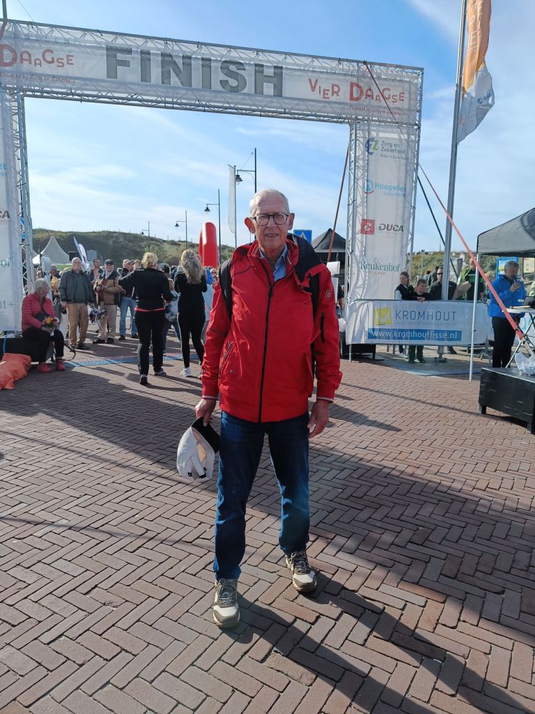 We lopen door het landgoed/bosgebied van Klein Leeuwenhorst met het ons bekende kinderklimbos. Er zijn vandaag meer rustpunten dan de vorige dagen. Ook aan de Westeinde bij het landgoed worden appeltjes en snoeptomaten uitgedeeld. Er staat een grote bus van Zorg en Zekerheid. Als je het laatste stukje niet meer ziet zitten brengt de bus je naar de finish. Daar hoef ik gelukkig geen gebruik van te maken.