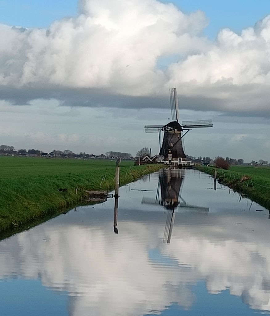 We verlaten de route uit het boekje om een bakkie te kunnen doen in Hazerswoude Dorp. Om 11.00 uur gaat Grand Café De Egel open. Dat is juist als wij komen aanlopen. Twee dames zaten op het terras en gaan nu ook naar binnen. Ze schenken hier een goede kop koffie. Terug gaan weer naar de route. Café Klein Giethoorn is in november ook gesloten. Dat had ik al gelezen op internet. Het is hier wel een mooie omgeving.