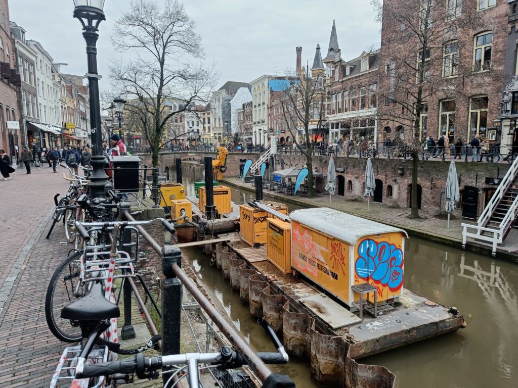 We komen weer in het centrum van de stad. Je kunt hier over de mensen lopen. Het is kerstvakantie en het is een dag zonder regen. We passeren onder meer het voormalige postkantoor en lopen over de Oude Gracht met werven.