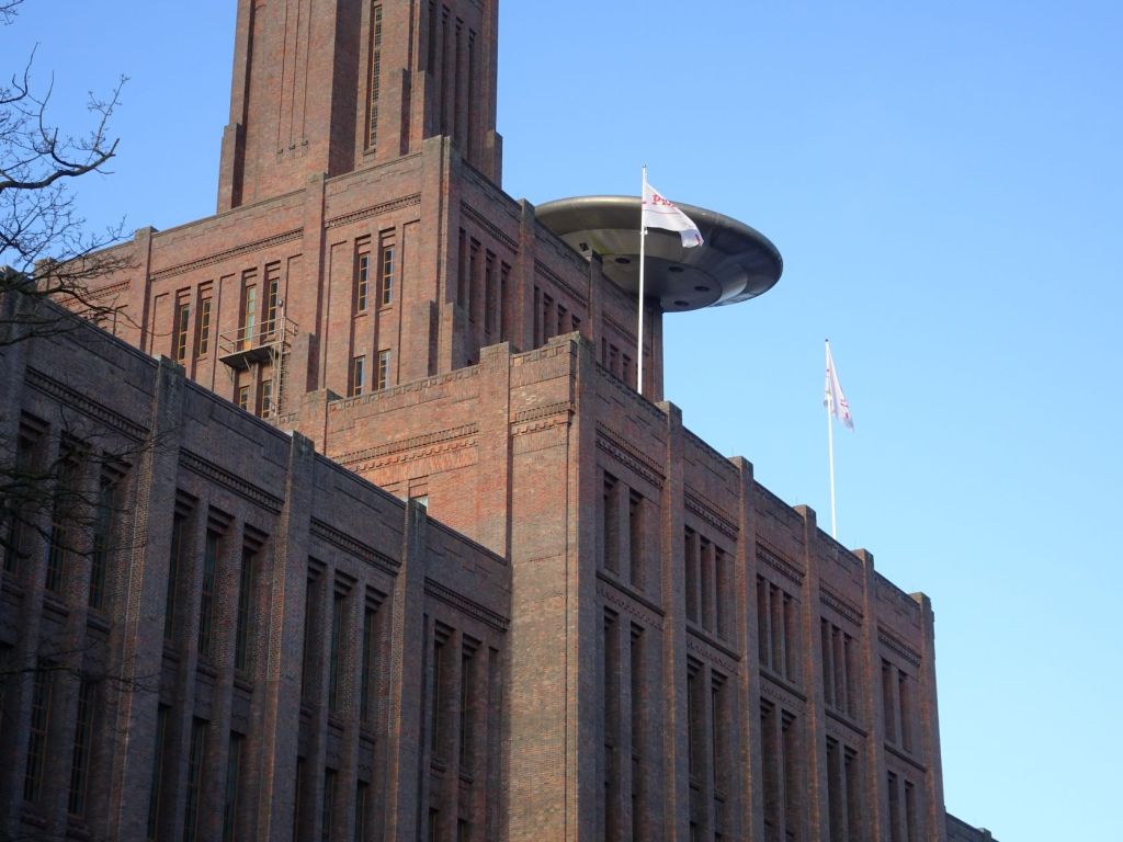 We lopen het Centraal Station uit en komen eerst langs de kantoren van de NS en daarna die van Pro Rail. Het hoofdkantoor van Pro Rail is gevestigd in gebouw de Inktpot. Op het dak staat een soort vliegende schotel, een kunstwerk van Marc Ruygrok. Het fraaie kantoorgebouw werd in 1921 gebouwd als Hoofdadministratiegebouw 111, kortweg HGB 111). De vader van Philip Fredriks werkte hier. De bekende Nederlander heeft hierover een verhaal geschreven, wat terug te vinden is op internet.