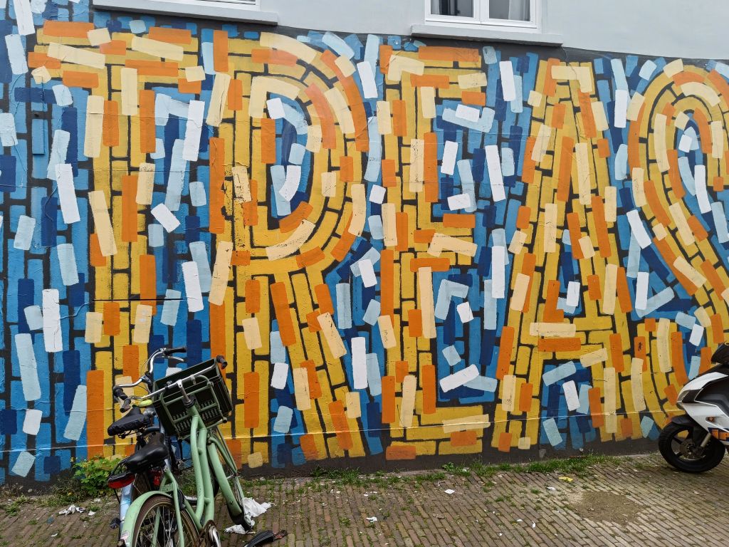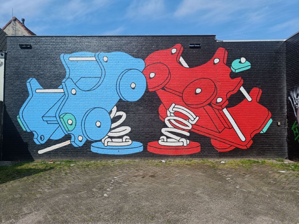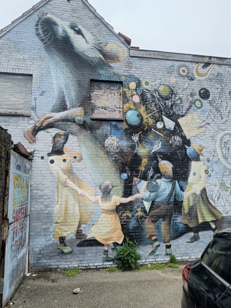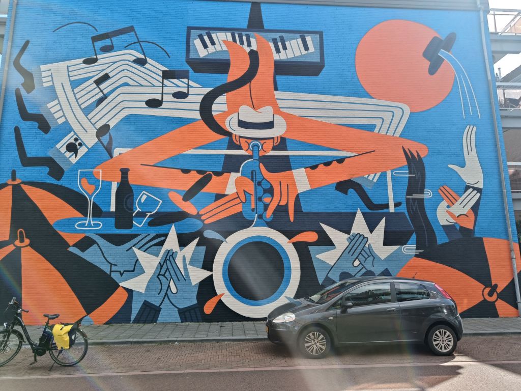 Terug in Breda lezen we over de Breda Blind Walls Gallery. Veel blinde muren zijn voorzien van grote schilderingen.