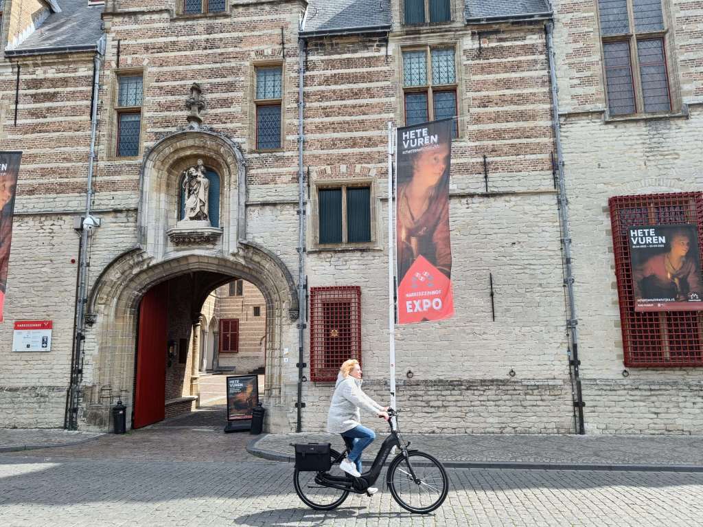 Ons appartement in Breda heeft officieel een huisnummer aan een drukke winkelstraat. maar is alleen via een achterliggende smalle straat te bereiken. In een boekje, dat we ontvingen via WhatsApp, staat hoe je van de straat de vakantiewoning kan bereiken. Er is een sleutelkastje maar die hoeven we nu niet te gebruiken, omdat de schoonmaakster nog aanwezig is. We moeten nog wat spulletjes vanuit de auto een aantal trappen op naar boven sjouwen. De auto staat op het naastgelegen parkeerterrein met plek voor meer dan 500 auto’s. Na de lunch op de Grote Markt gaan we op de fiets richting Baarle Nassau.