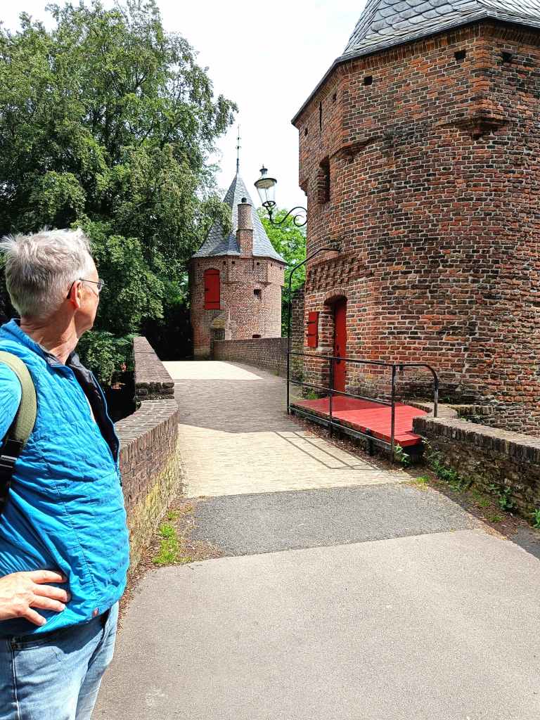 Wij volgen de wandelroute en lopen langs restanten van oude muren, een stadspoort en veel meer. Ook genieten we van terrassen in de zon. Het is een prachtige zomerse dag.