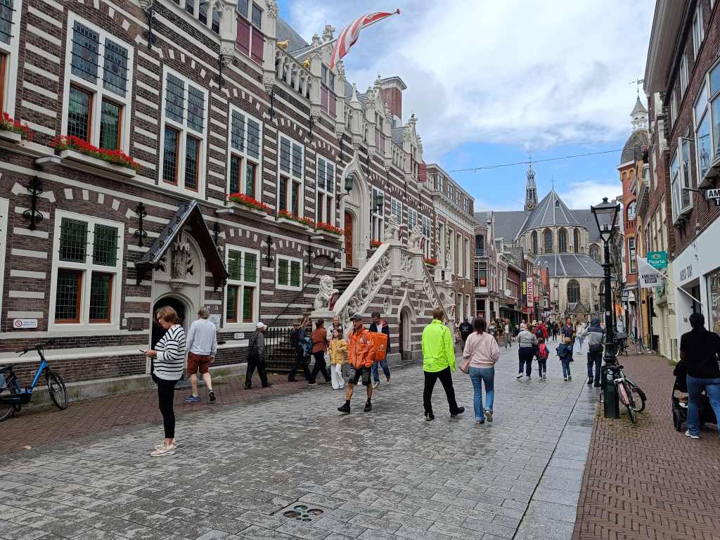 De groene wandeling gaat door parken en over de stadswallen, met namen als Clarissenbolwerk en Kennemerbolwerk. Het tweede deel voert door de oude binnenstad met als publiektrekkers de kaasmarkt, de waag, de Laurentiuskerk en het stadhuis. Ook gaan we door smalle straatjes met ouderwetse winkeltjes. Twee keer schuilen we voor de regen op een overdekt terras. Bij het eerste terras – we zijn hier de eerste gasten – vraagt de serveerster of ze de terrasverwarming moet aanzetten. Dat vinden we te veel van het goede. Het tweede terras is op de Kaasmarkt. Hier kom je veel toeristen tegen.
