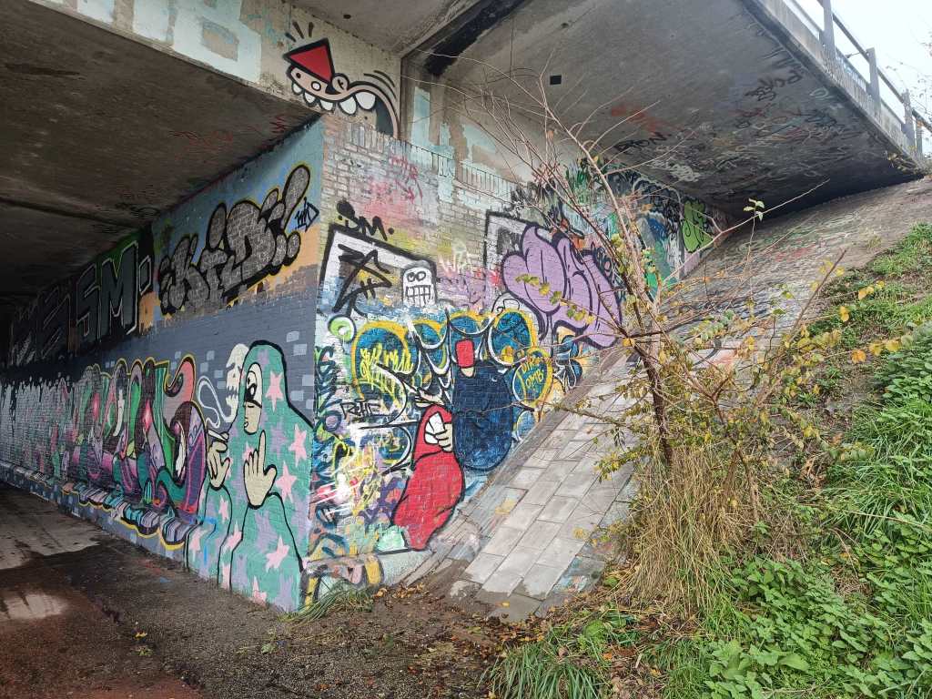 In de buurt van de woonboulevard en het ziekenhuis van Leiderdorp staat een wegafzetting met omleiding. Dat was een paar maanden geleden ook al zo. Toen waren wegwerkers aan het werk. Nu is het bouwvakvakantie. We proberen het erop. Voor fietsers en wandelaars is de ‘afgesloten’ route goed te nemen.