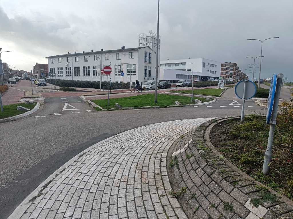 De Spoorlaan van Voorhout was een doodlopende weg. Nu is hij doorgetrokken naar de Bollendreef/ Noordelijke Randweg. We komen langs een rotonde zonder zijwegen. Die zullen later komen als hier nieuwbouwwijken worden gerealiseerd.