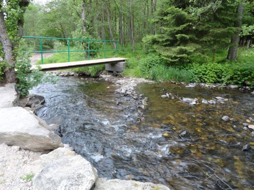 Polleur ligt in het dal van de Hoegne. Hoog over dit dal heen gaat snelweg A27/E42 van Verviers naar Trier. Het lijkt wel of we hier in Oostenrijk zijn. Er loopt een langeafstand pad door het dorp. Na het avondeten loop ik een stukje van die route en kom langs de historische brug over de Hoegne.