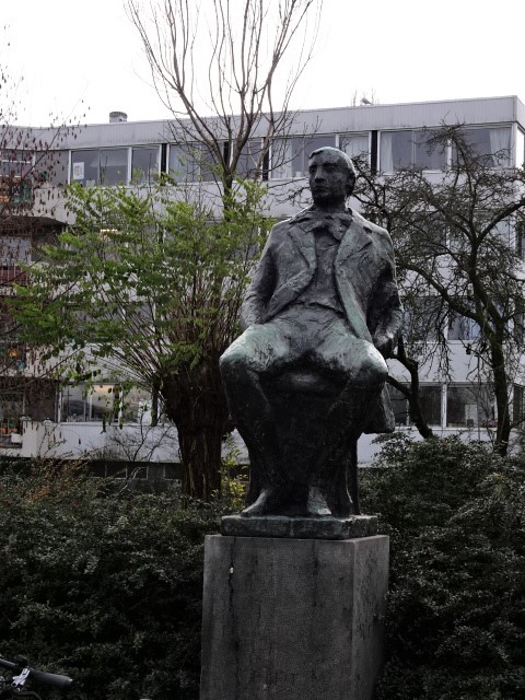 In Leiden komen we langs het beeld van Piet Paaltjes. Dat is een pseudoniem voor de dichter en dominee François Haverschmidt geboren in 1835. Hij studeerde theologie in Leiden en was predikant in onder andere Den Helder en Schiedam. Hij leed aan depressies en maakte in 1894 een eind aan zijn leven door zich op te hangen aan een koord in zijn bedstee.