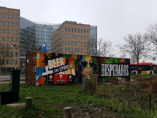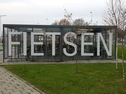 Een paar honderd meter voor Schiphol Plaza is er geen fietspad meer. Een bordje wijst naar een fietsenstalling die er nu (tijdelijk) niet meer is. Hier vinden straat- en bouwwerkzaamheden plaats. Alle horeca op Schiphol Plaza is gesloten. Je kunt er wel naar de wc overigens. Het is betrekkelijk rustig. Echt stil is het niet. Er vliegen wel vliegtuigen, waarschijnlijk vooral met vracht.