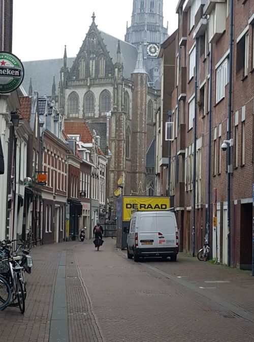 Het Houtplein wordt nog steeds opgesierd door een hoog gevaarte met groene telefooncellen. Voorbij de brug over de Singel bij het Italiaans restaurant, staat op de splitsing van de Grote Houtstraat en de Gierstraat een oliebollen- en een bloemenkraam. Het is hier niet druk, zoals overal in het centrum van Haarlem. In het vroegere gebouw van V & D zit nu de HEMA. Over de Kruisstraat en Kruisweg fiets ik op mijn gemak richting het station. Onderweg kruis ik de Parklaan. Hier woonde ik een paar jaar rond 1970.