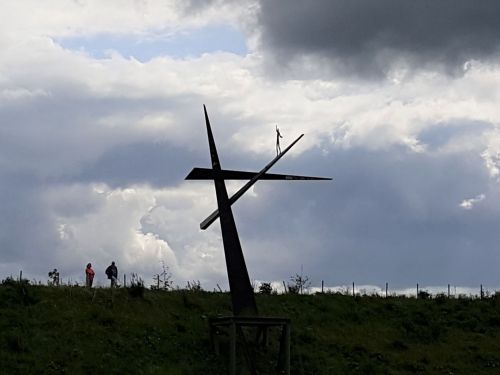 Dwars door Leiden en dan naar Zoeterwoude-Dorp. Het is vanmorgen nog knap koud. Ik laat Bert het beeld van de koe zien, gemaakt van ijzeren gereedschapspullen. De foto’s kan je ergens anders vinden op mijn blog, zie link. https://dickwalraven.blog/2020/08/27/zoeterwoude/