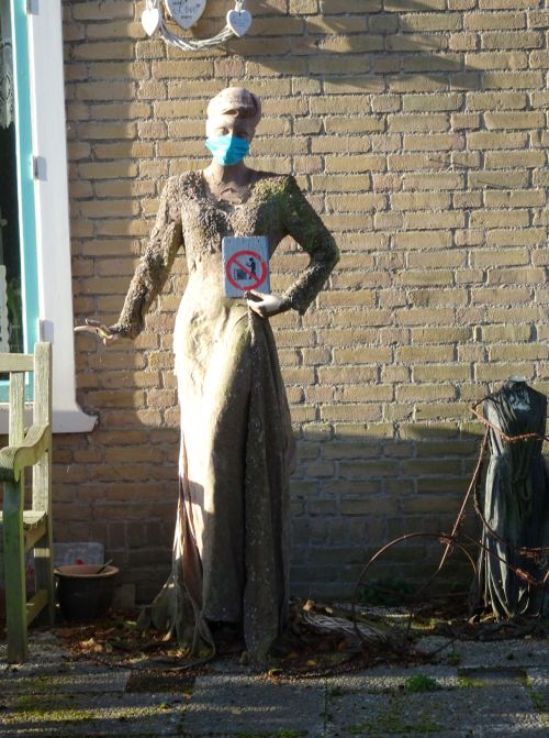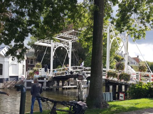 We gaan vandaag niet helemaal volgens de officiële route, maar maken een ommetje door de Weerribben. Bij het sluisje van Ossenzijl zitten we op het terras in de zon. Het smalle fietspad langs de Kalenbergervaart gaat over een groot aantal houten bruggetjes. In verband met de corona is er hier éénrichtingverkeer ingevoerd. Bij Kalenberg kunnen we daarom niet verder en moeten omrijden. Hier zou je tegen de richting inrijden als je rechtdoor zou gaan. Onderweg komen we wel door het dorpje Nederland, maar niet door Muggenbeet.